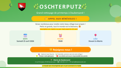 Appel aux bénévoles pour la journée "OSCHTERPUTZ" du 25 avril 2026.